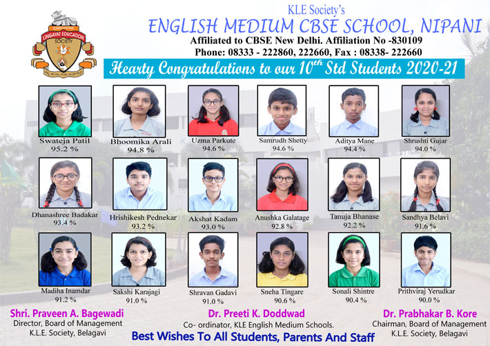 | 11 | Arya Nagarale | X | AISSE | CBSE | 91.6% | |||